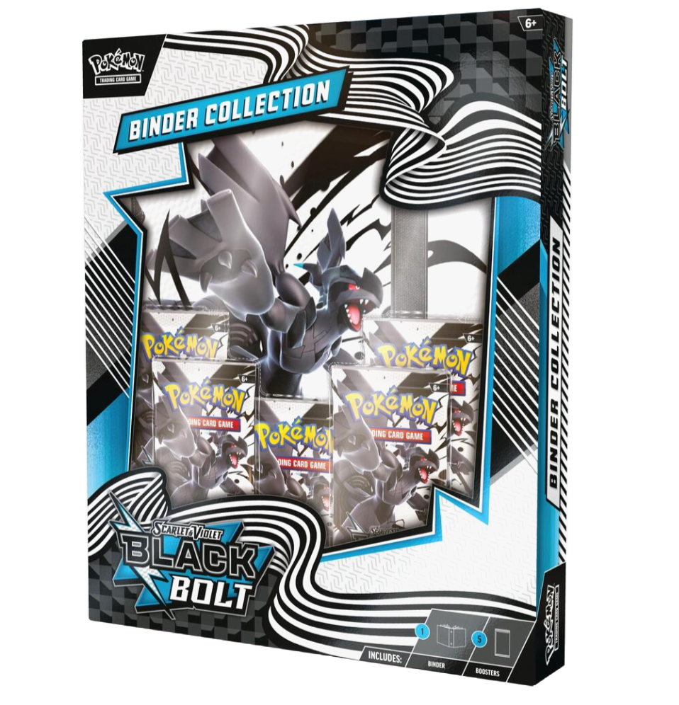 Includes five Scarlet & Violet—Black Bolt or Scarlet & Violet—White Flare booster packs, respectively; and one nine-pocket album featuring Zekrom or Reshiram, respectively, to organize and store Pokémon TCG cards.