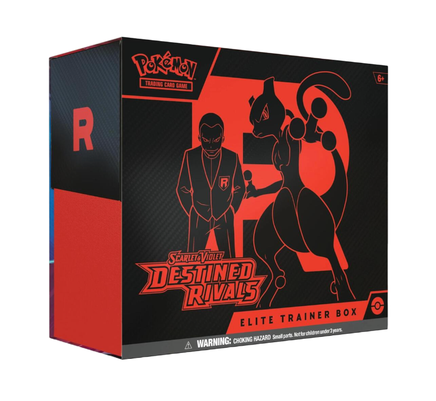 Pokémon Trainers, be on high alert! The nefarious Team Rocket is setting its latest plan into motion, and heroic Trainers are racing to stop it. Join forces with the likes of Cynthia and Garchomp ex, Ethan and Ho-Oh ex, or Arven and Mabosstiff ex… Or reconsider your loyalties and fight alongside Team Rocket’s Pokémon like Mewtwo ex—under the command of Giovanni! Choose a side, assemble your allies, and battle boldly in the Pokémon TCG: Scarlet & Violet—Destined Rivals expansion!